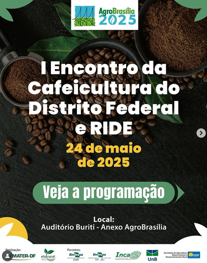 A edição de 2025 da AgroBrasília, que será realizada de 20 a 24 de maio, com o tema “Agro, Oportunidade para Todos”, sediará o I Encontro da Cafeicultura do Distrito Federal e Região Integrada de Desenvolvimento (Ride-DF).